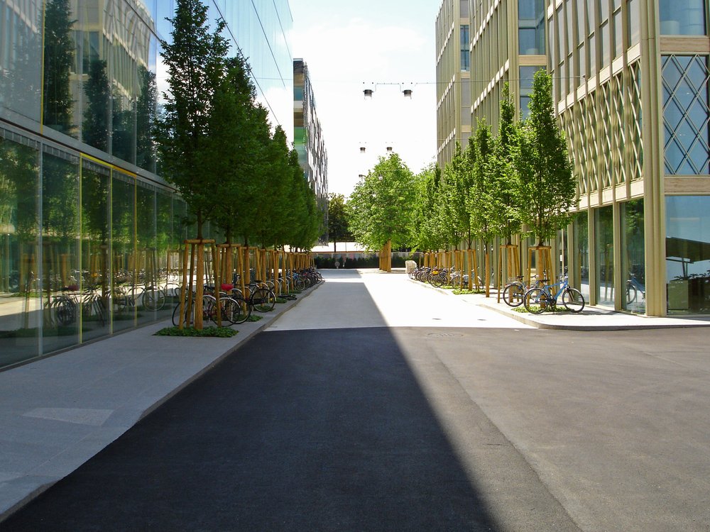 Nach den Masterplänen von V.M. Lampugnani und Peter Walker konnten wir diverse Landscape Areas umsetzen (Areas 1, 2, 3, 5, 7, 8, 10, 12). Die Bauherrschaft ist sehr anspruchsvoll und fordert von den Planern und Unternehmen Höchstleistungen. Es gibt sehr viele Neuentwicklungen und Spezialitäten. Das Umfeld ist sehr sensibel, und es muss grösste Vor- und Rücksicht auf die Besucher, die Mitarbeiter und die bereits gebauten Gebäude geboten werden. Vor allem Staub- und Lärmemissionen müssen auf ein Minimum reduziert werden.